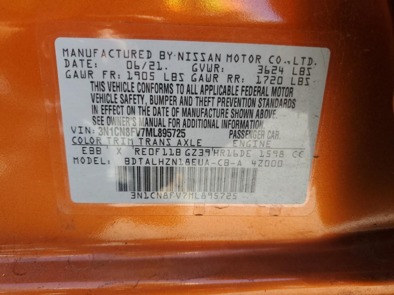 - ВИН: 3N1CN8FV7ML******
