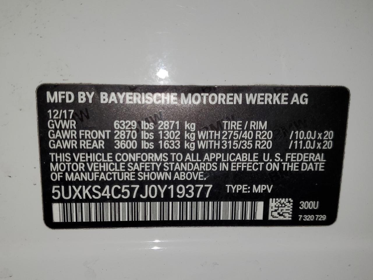 - ВИН: 5UXKS4C57J0******