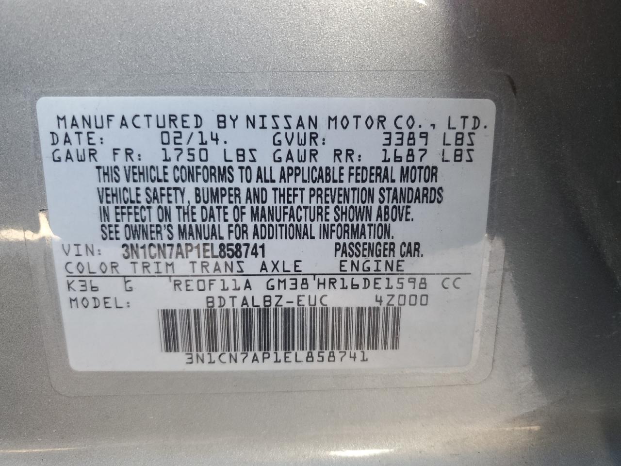 - ВИН: 3N1CN7AP1EL******