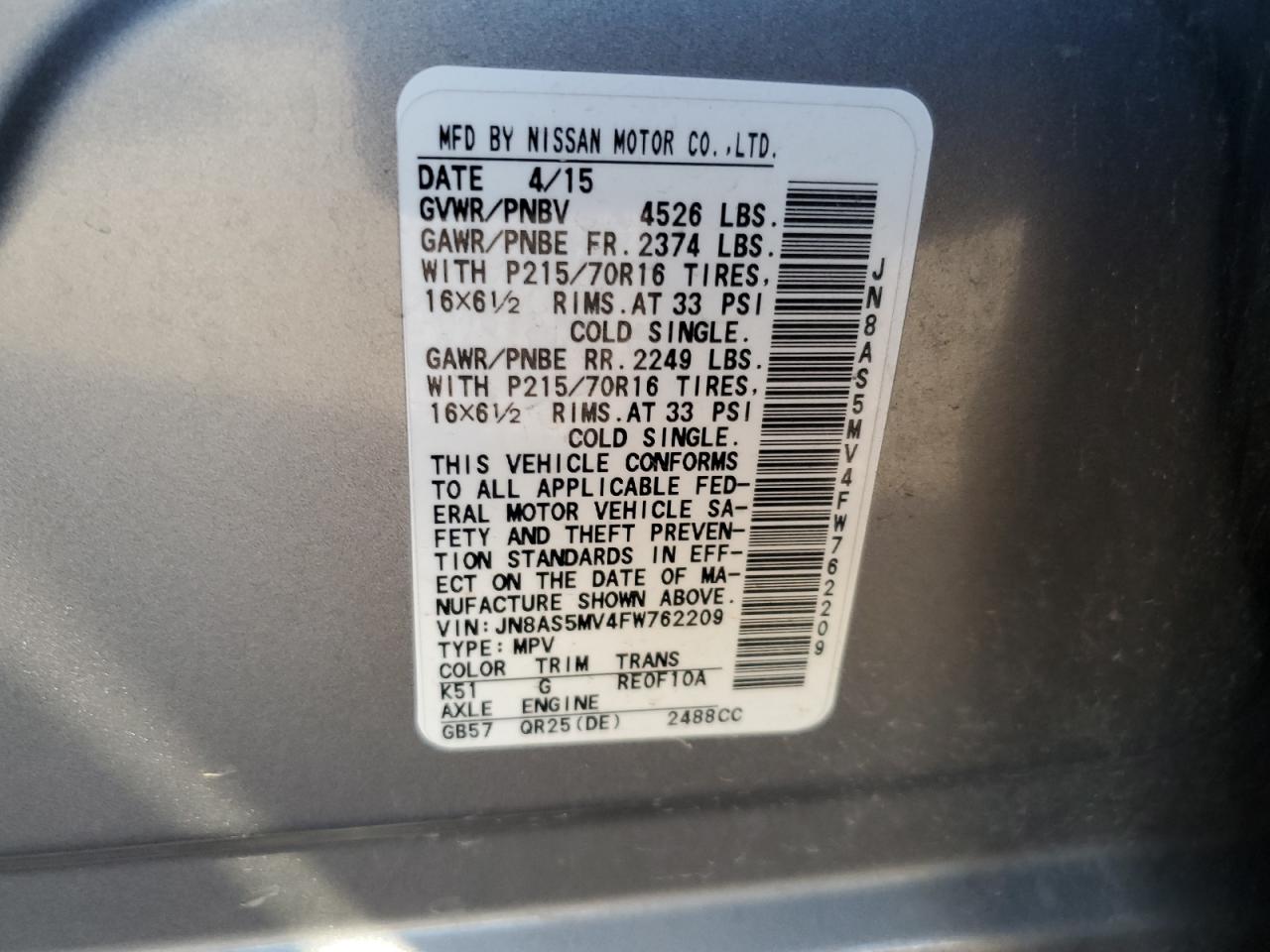 - ВИН: JN8AS5MV4FW******