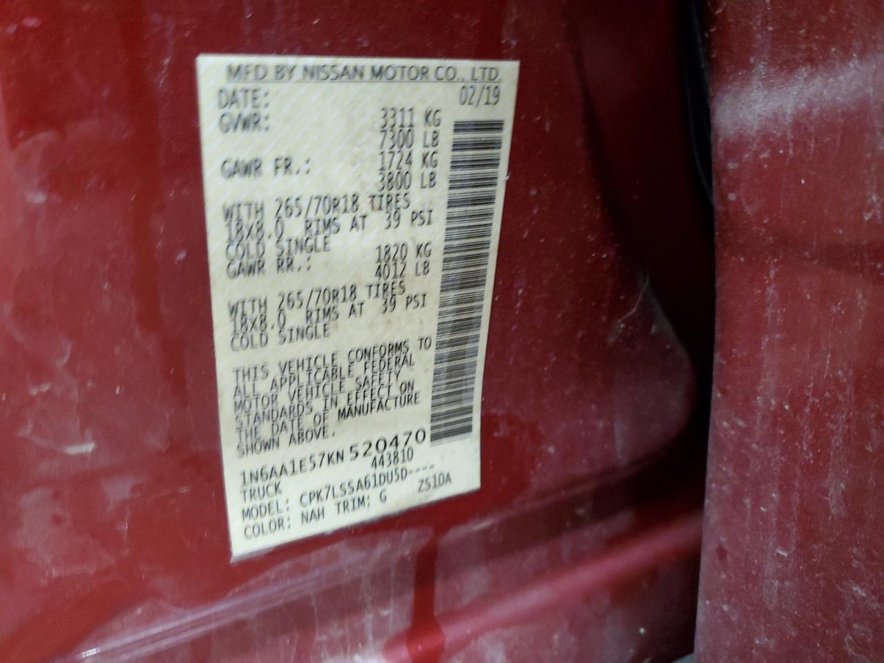 - ВИН: 1N6AA1E57KN******