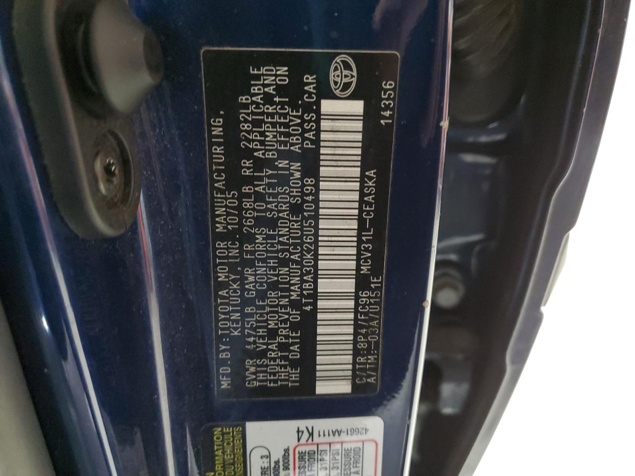- ВИН: 4T1BA30K26U******
