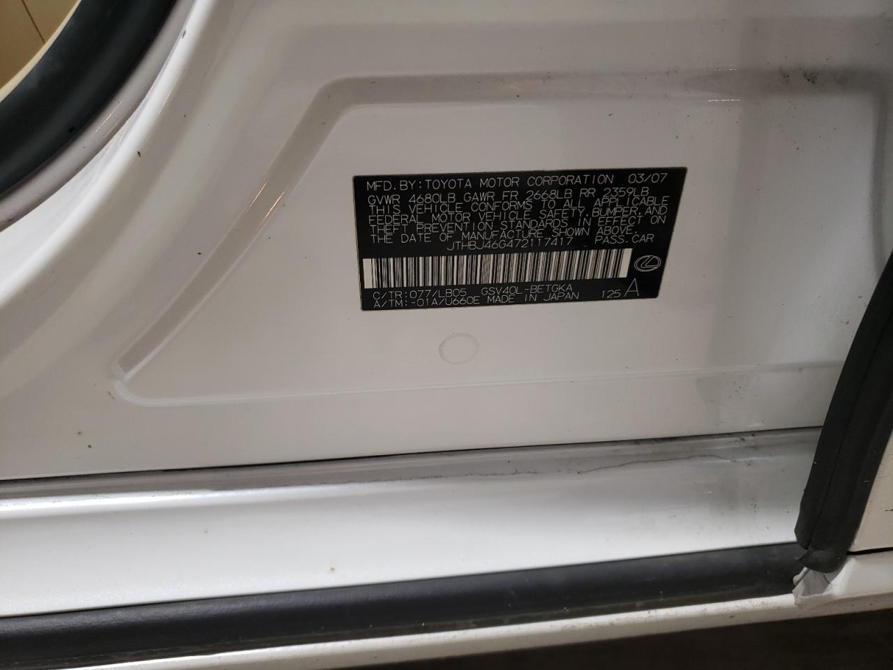 - ВИН: JTHBJ46G472******