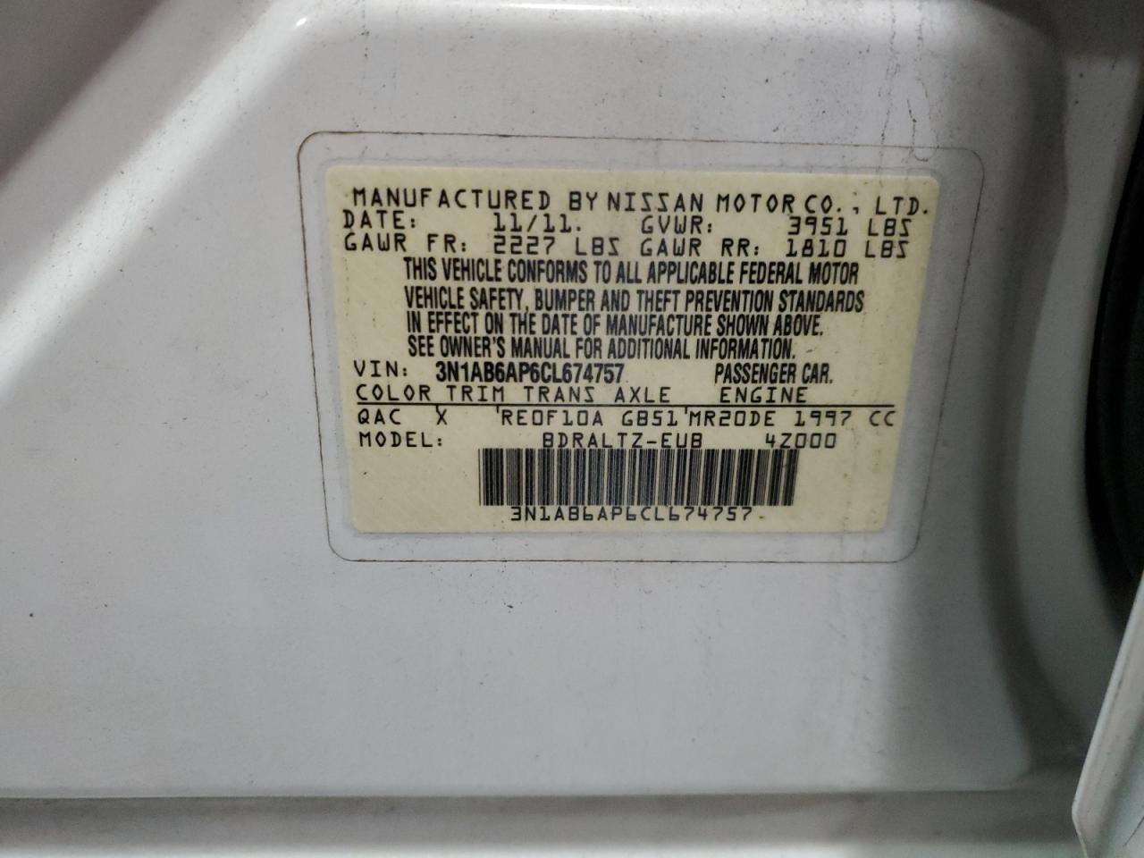 - ВИН: 3N1AB6AP6CL******