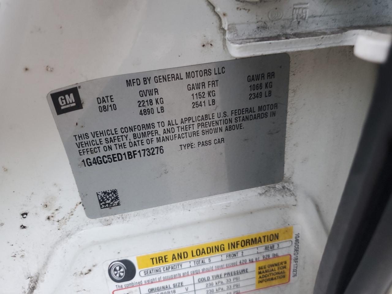 - ВИН: 1G4GC5ED1BF******