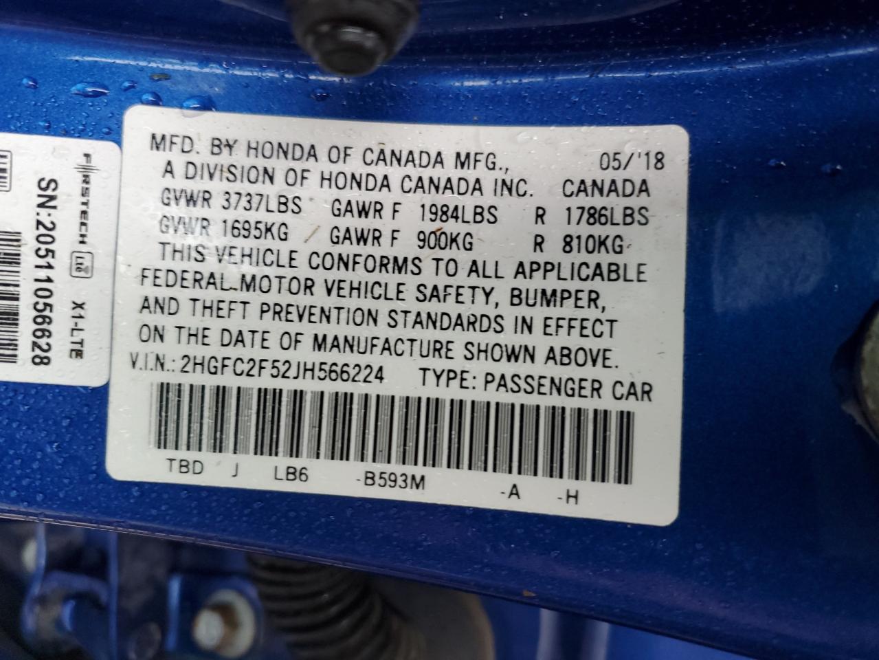 - ВИН: 2HGFC2F52JH******