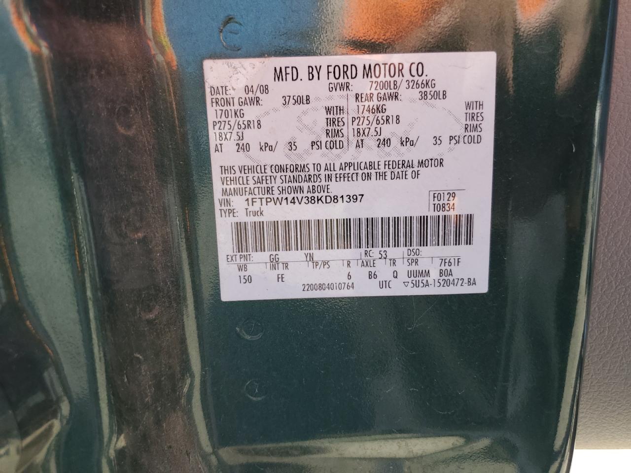 - ВИН: 1FTPW14V38K******