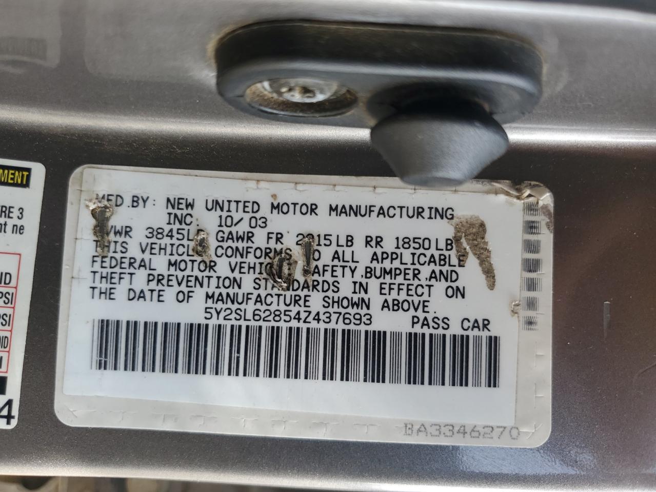 - ВИН: 5Y2SL62854Z******