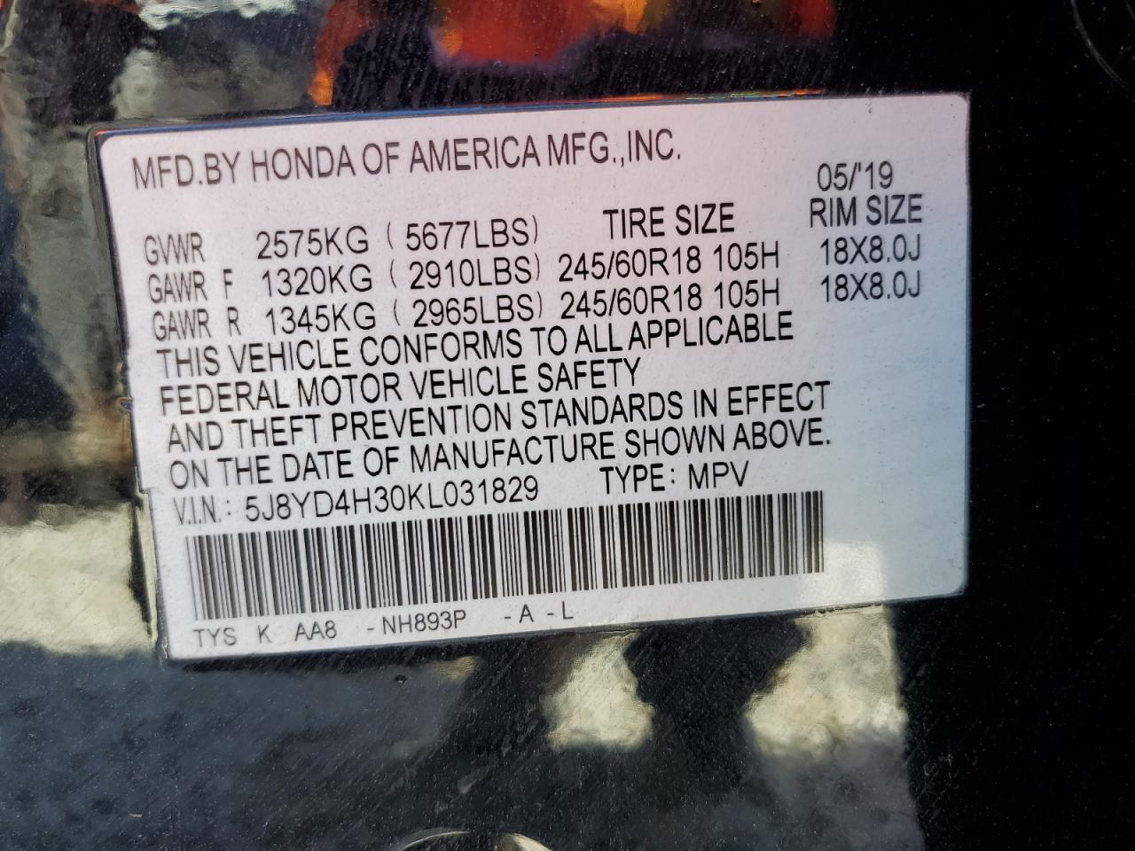 - ВИН: 5J8YD4H30KL******