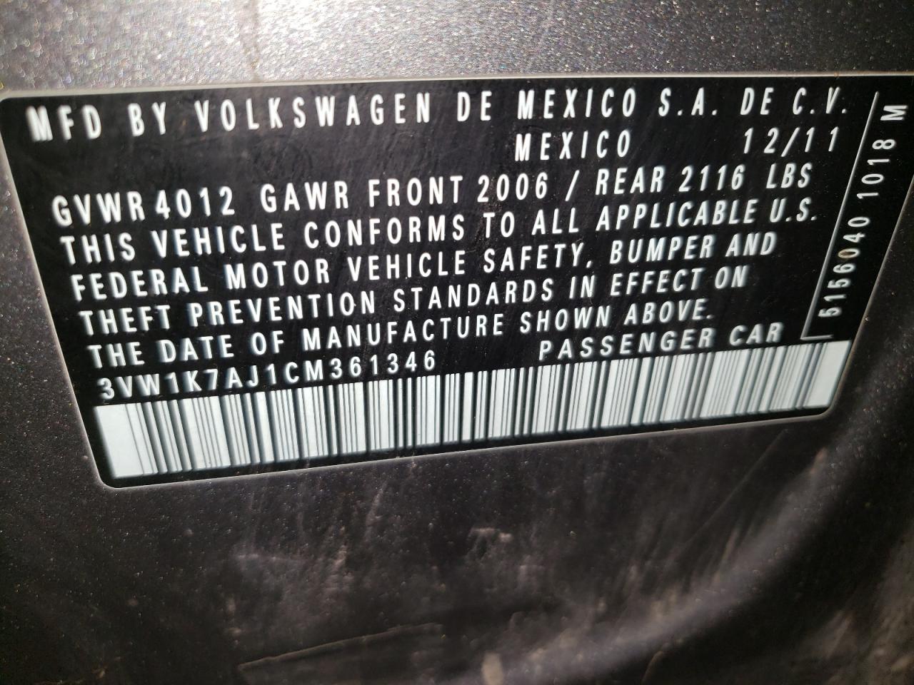 - ВИН: 3VW1K7AJ1CM******