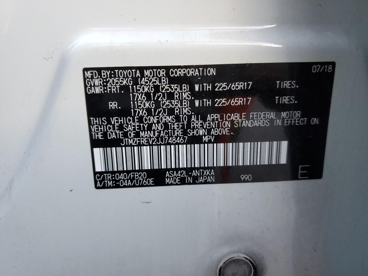 - ВИН: JTMZFREV2JJ******