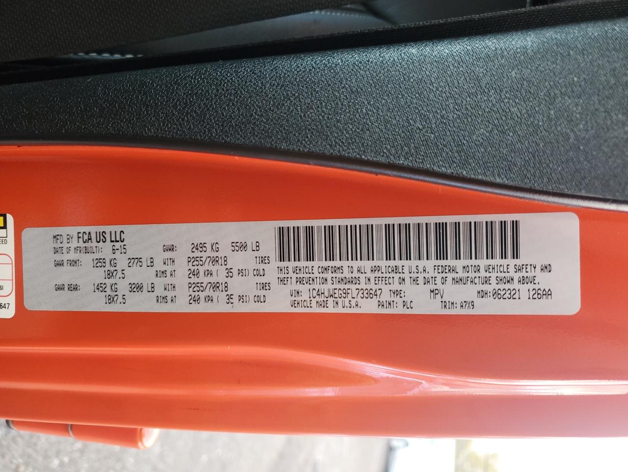 - ВИН: 1C4HJWEG9FL******