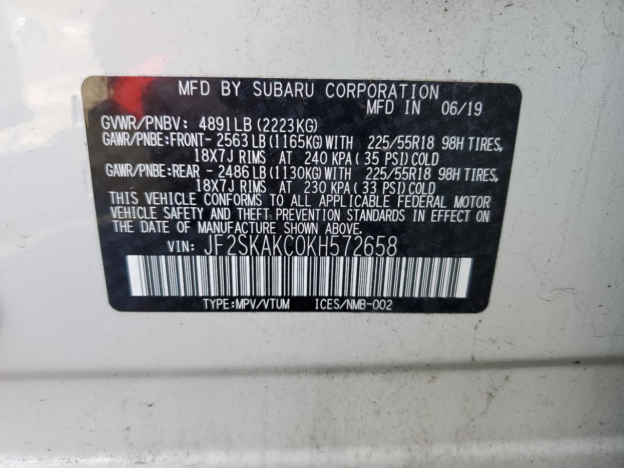 - ВИН: JF2SKAKC0KH******