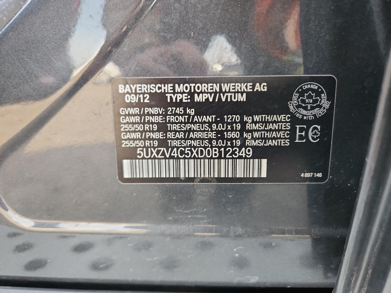 - ВИН: 5UXZV4C5XD0******