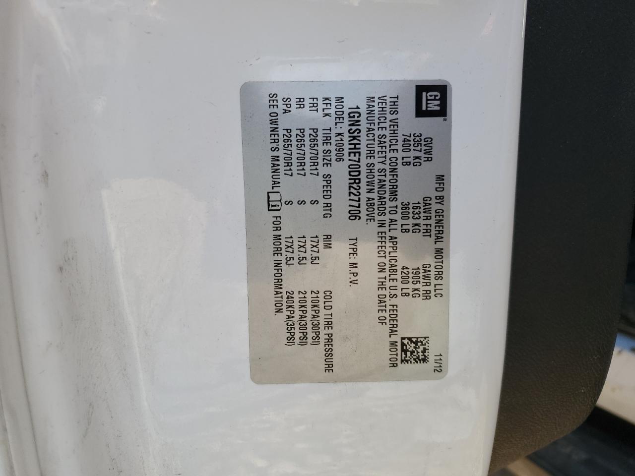 - ВИН: 1GNSKHE70DR******