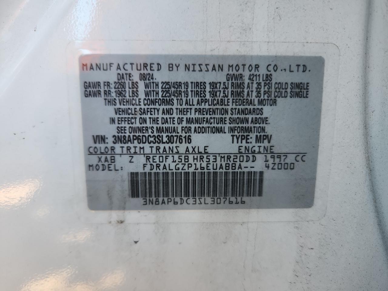 - ВИН: 3N8AP6DC3SL******