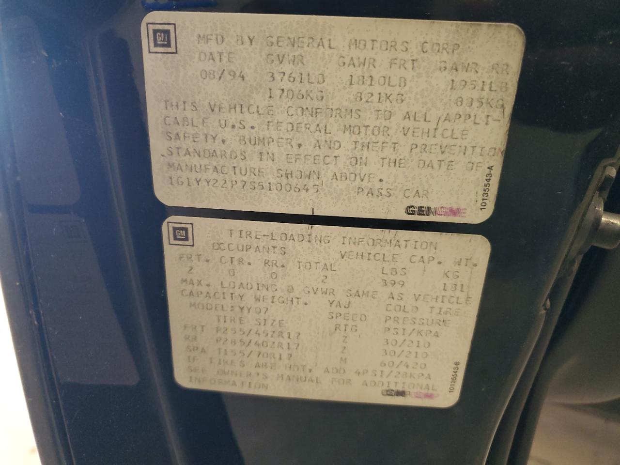 - ВИН: 1G1YY22P7S5******