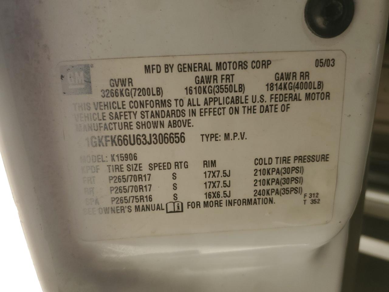 - ВИН: 1GKFK66U63J******