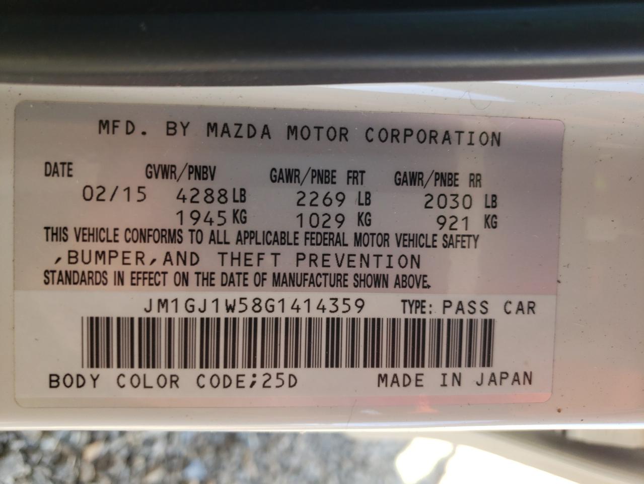 - ВИН: JM1GJ1W58G1******