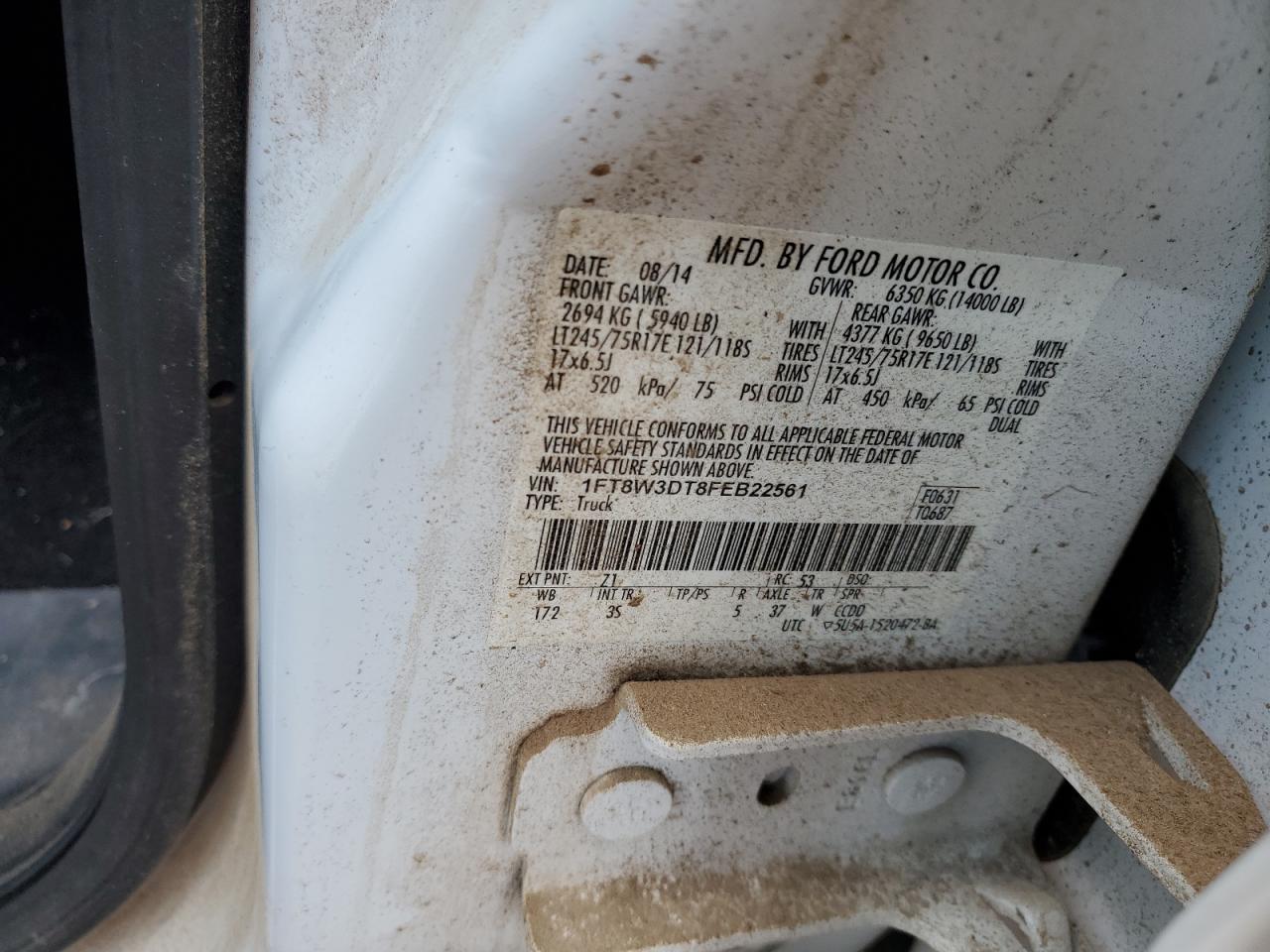 - ВИН: 1FT8W3DT8FE******