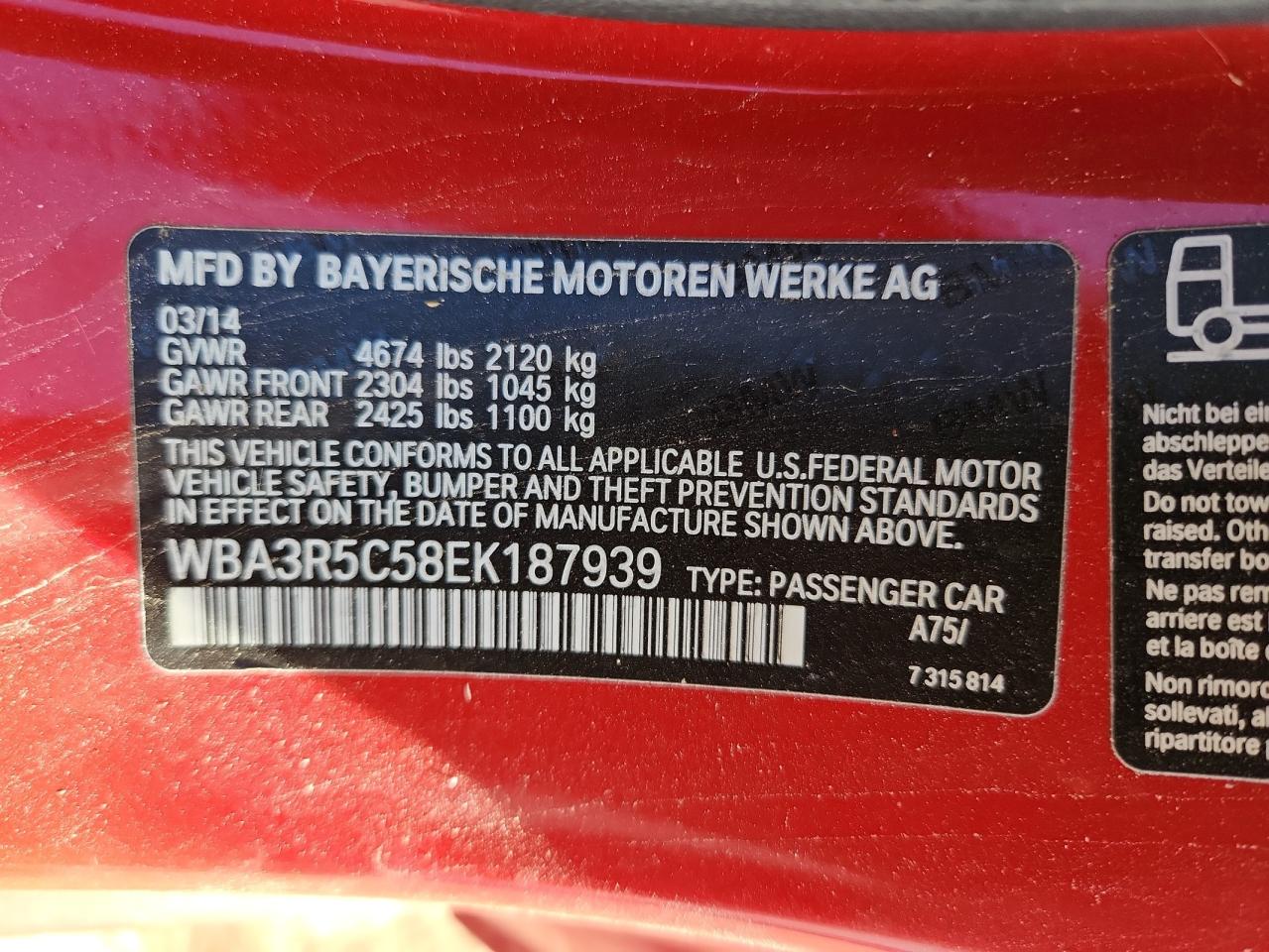 - ВИН: WBA3R5C58EK******