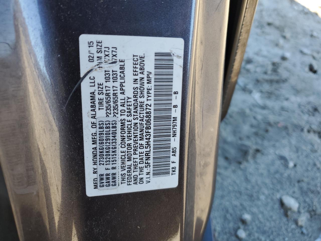 - ВИН: 5FNRL5H43FB******
