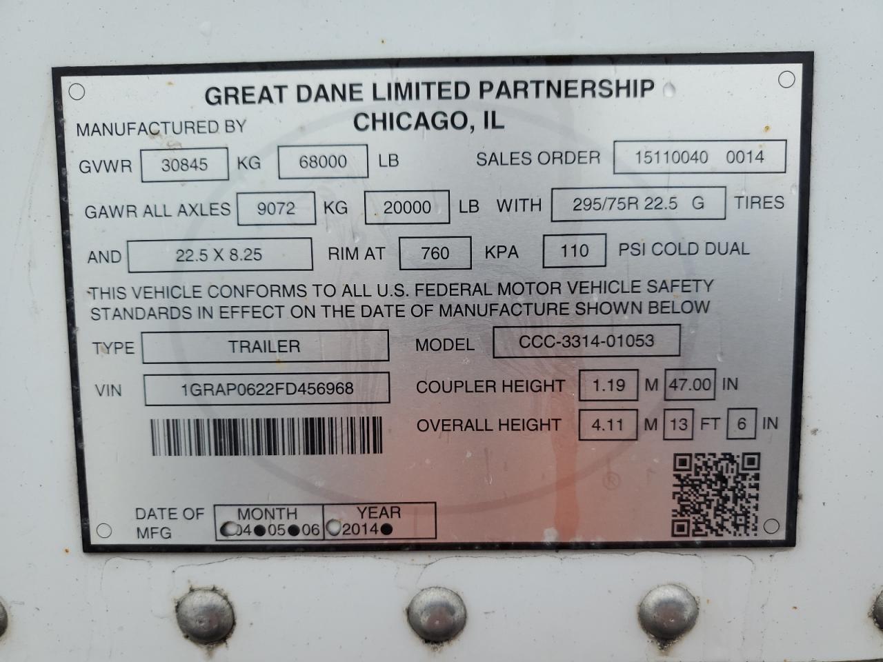 2015 GREAT DANE CCC-3314-01053 DRY VAN TRAILER из США