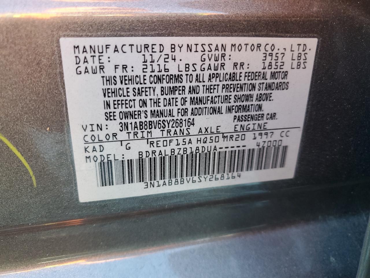 - ВИН: 3N1AB8BV6SY******