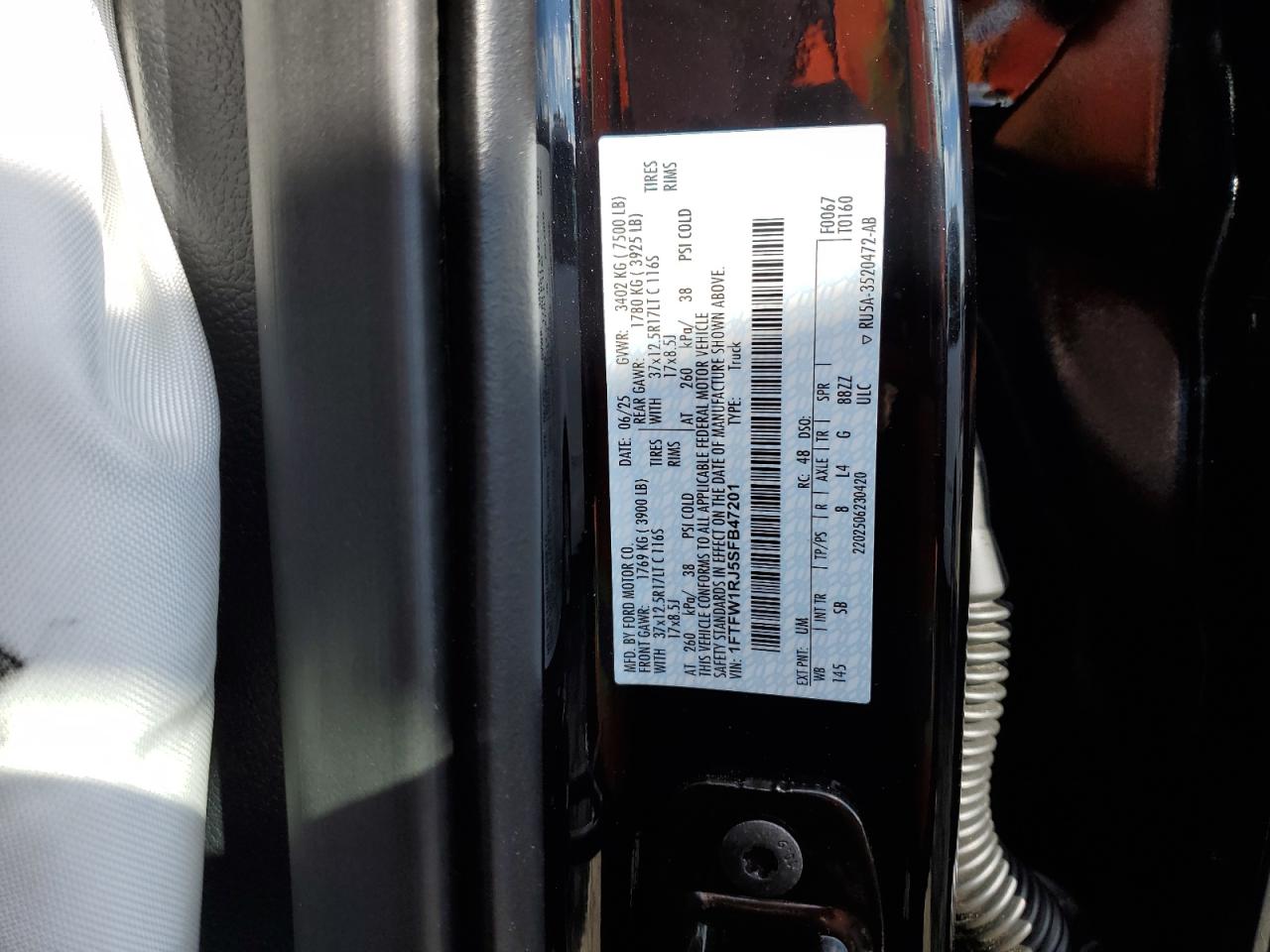 - ВИН: 1FTFW1RJ5SF******