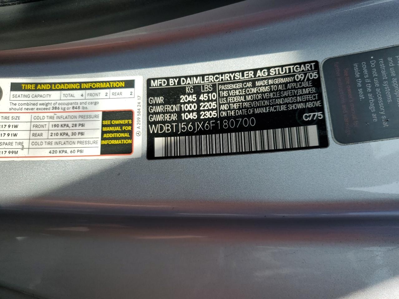 - ВИН: WDBTJ56JX6F******