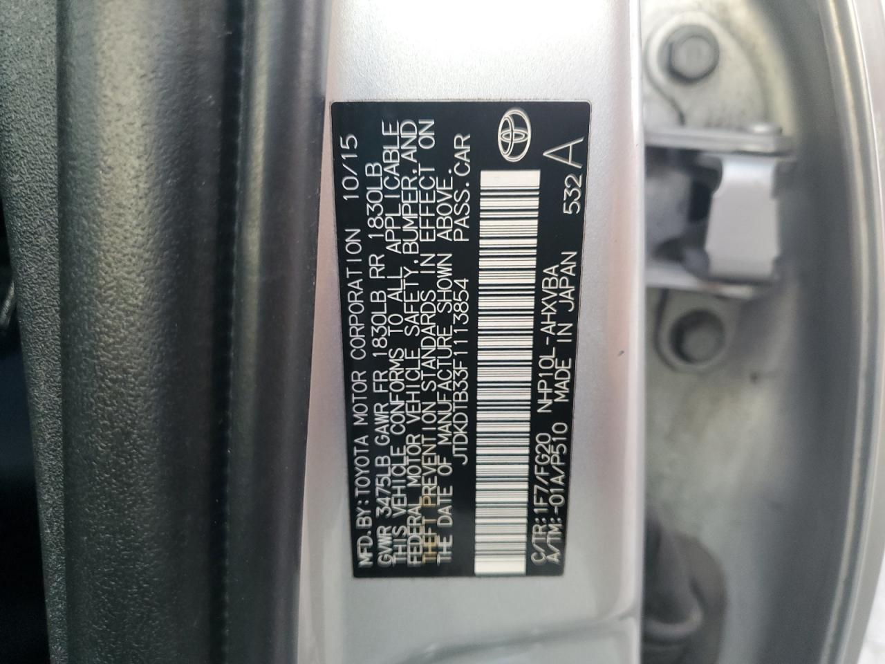 - ВИН: JTDKDTB33F1******