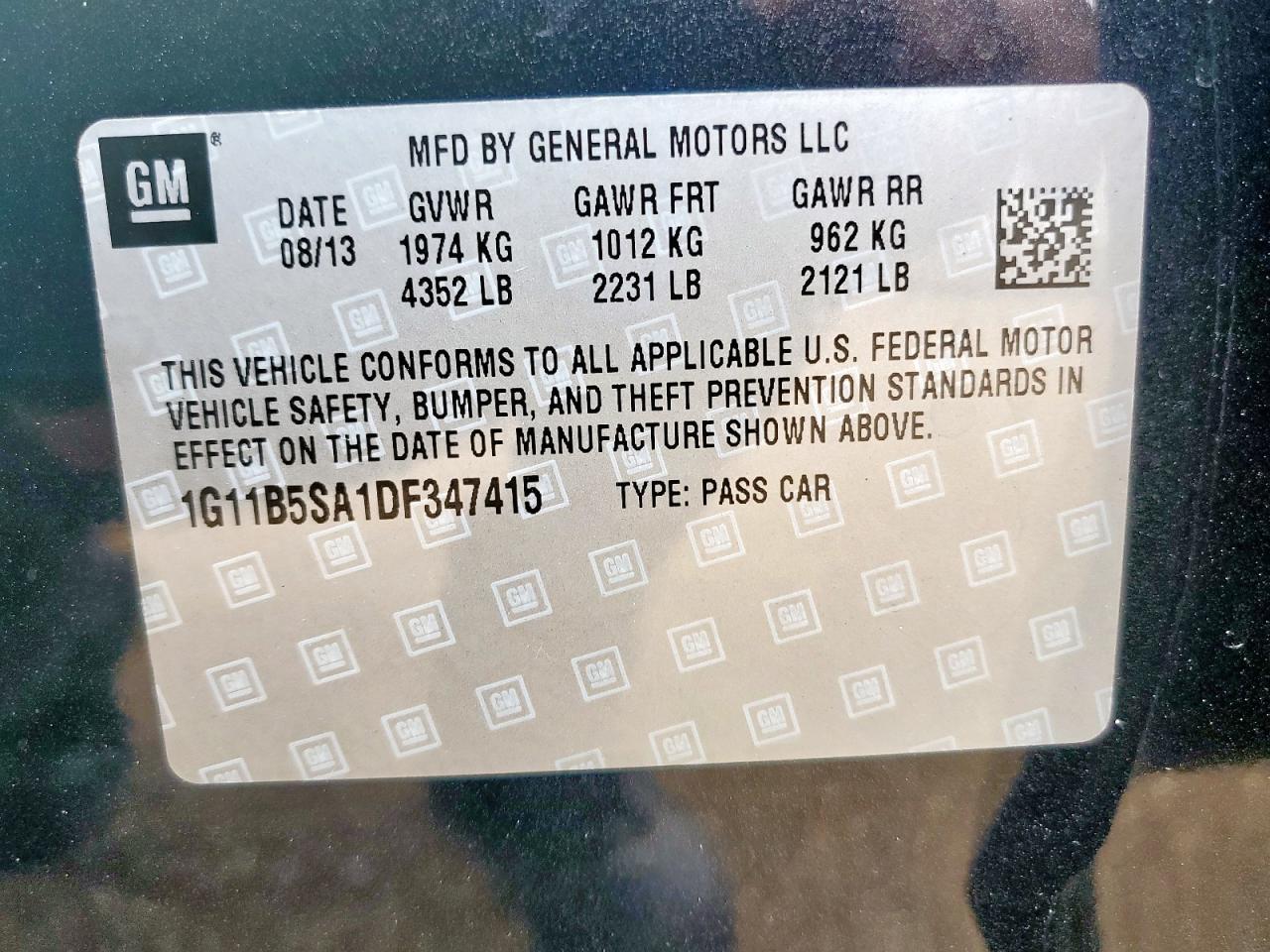 - ВИН: 1G11B5SA1DF******