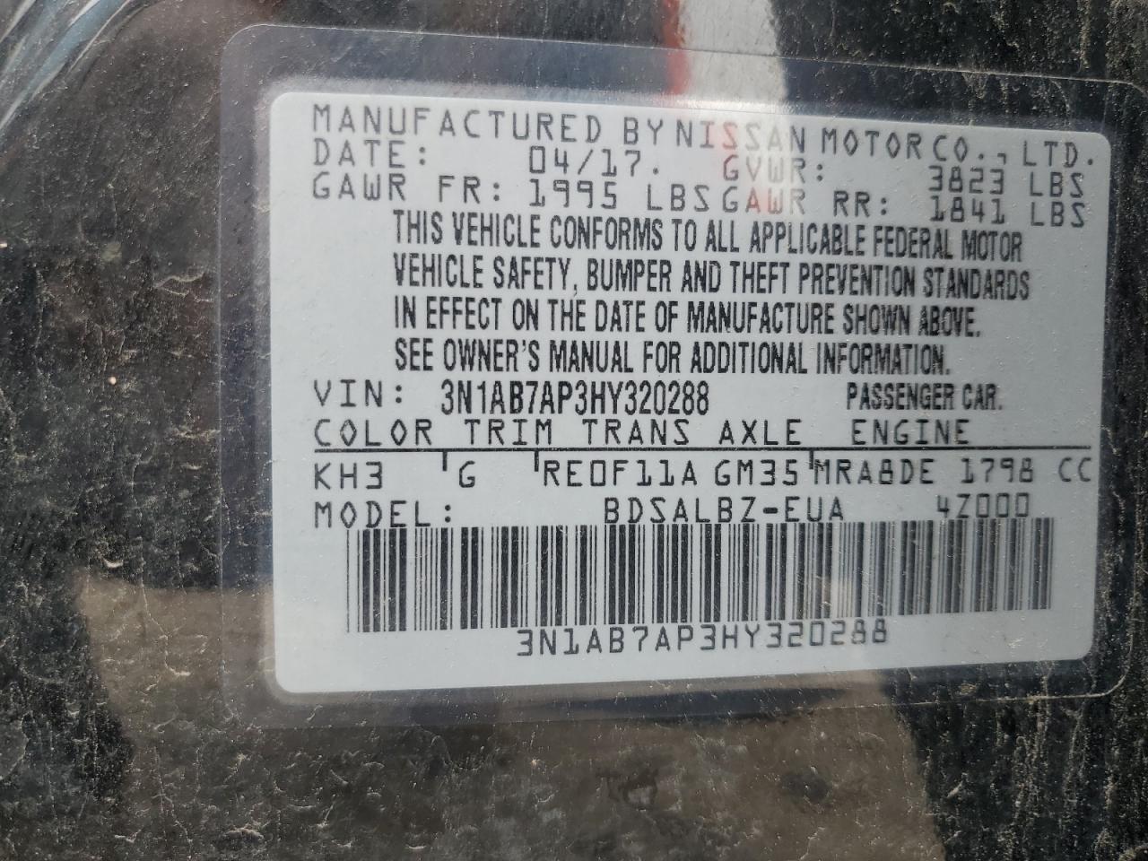- ВИН: 3N1AB7AP3HY******