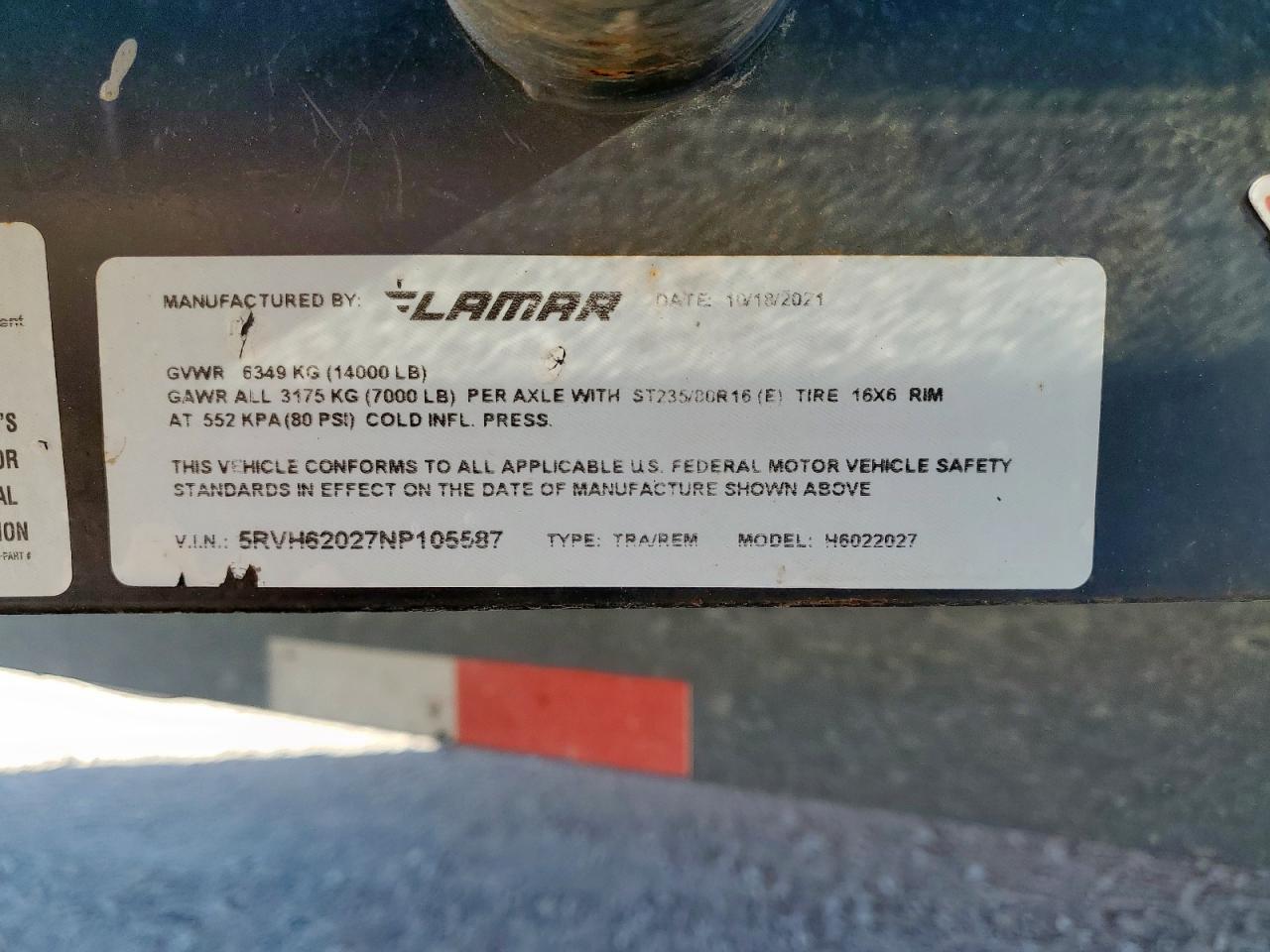 2022 LAMAR H6022027 EQUIPMENT TRAILER из США