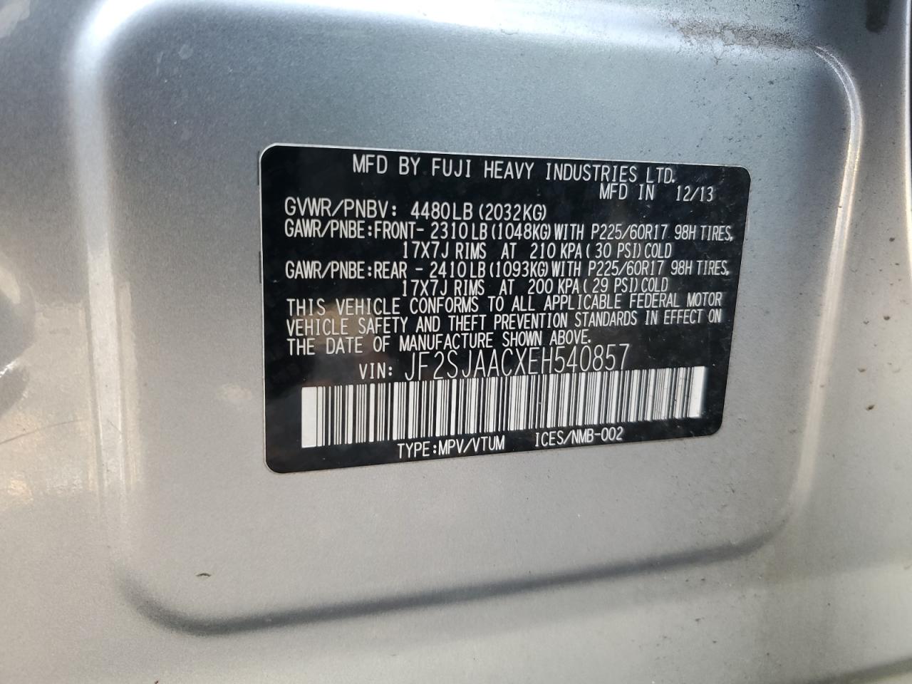 - ВИН: JF2SJAACXEH******