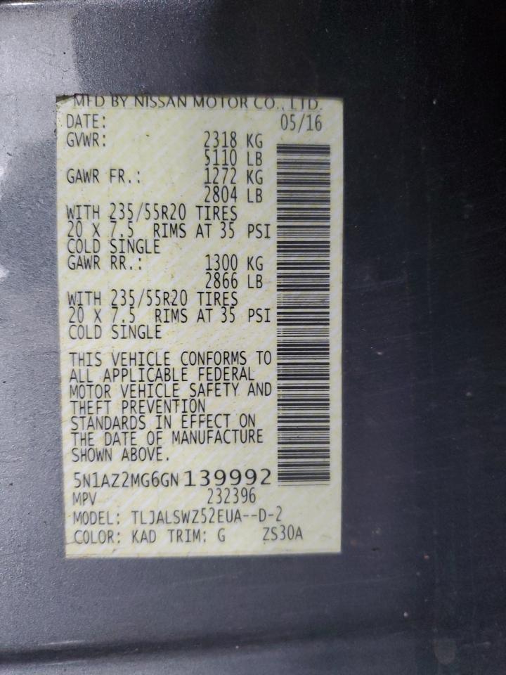 - ВИН: 5N1AZ2MG6GN******