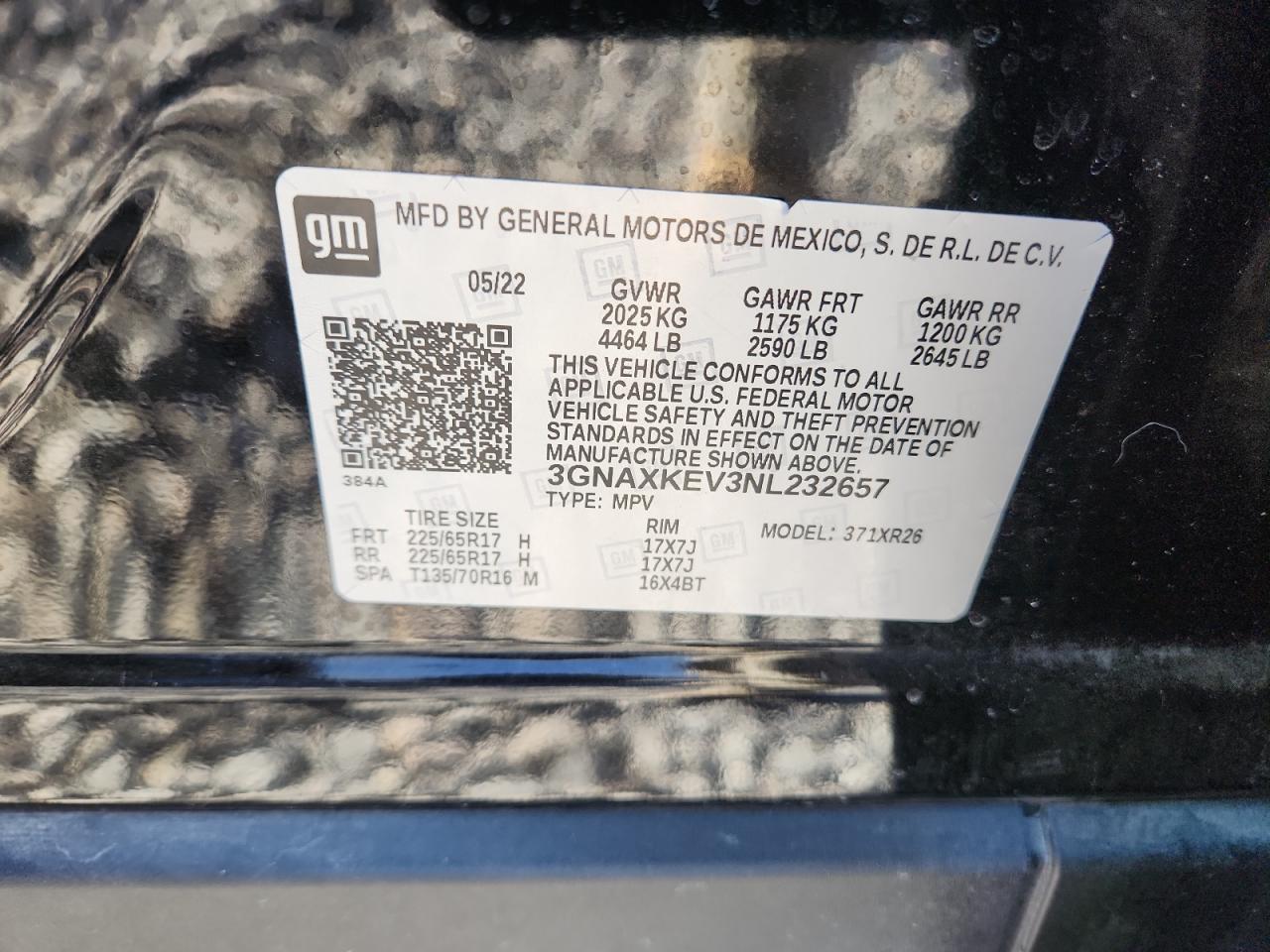 - ВИН: 3GNAXKEV3NL******
