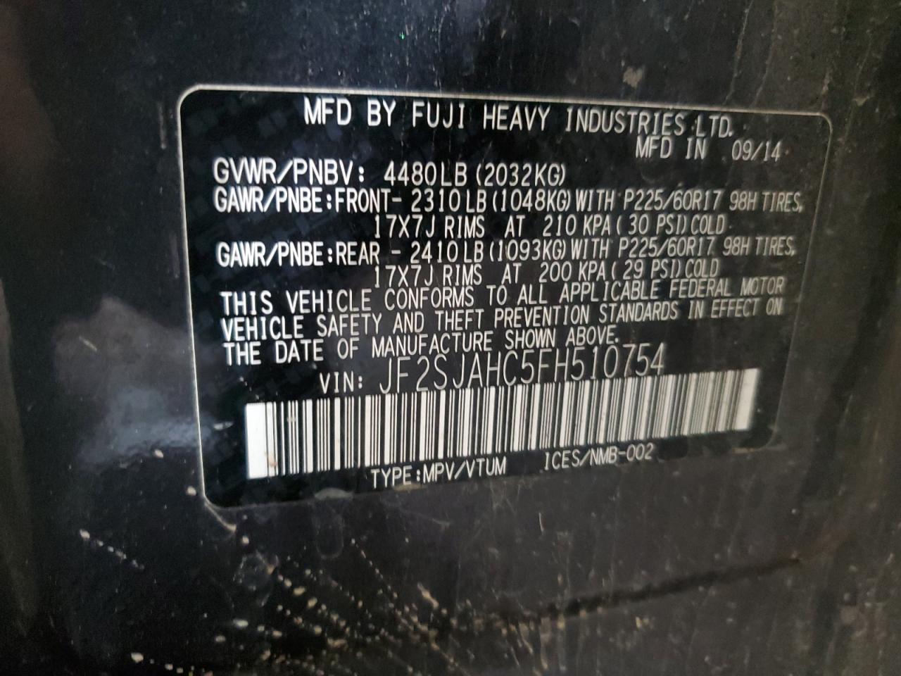 - ВИН: JF2SJAHC5FH******
