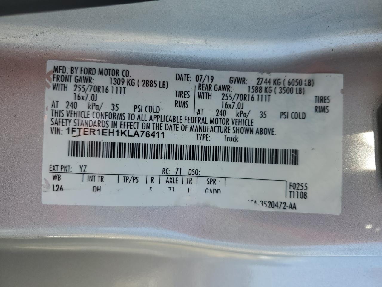 - ВИН: 1FTER1EH1KL******