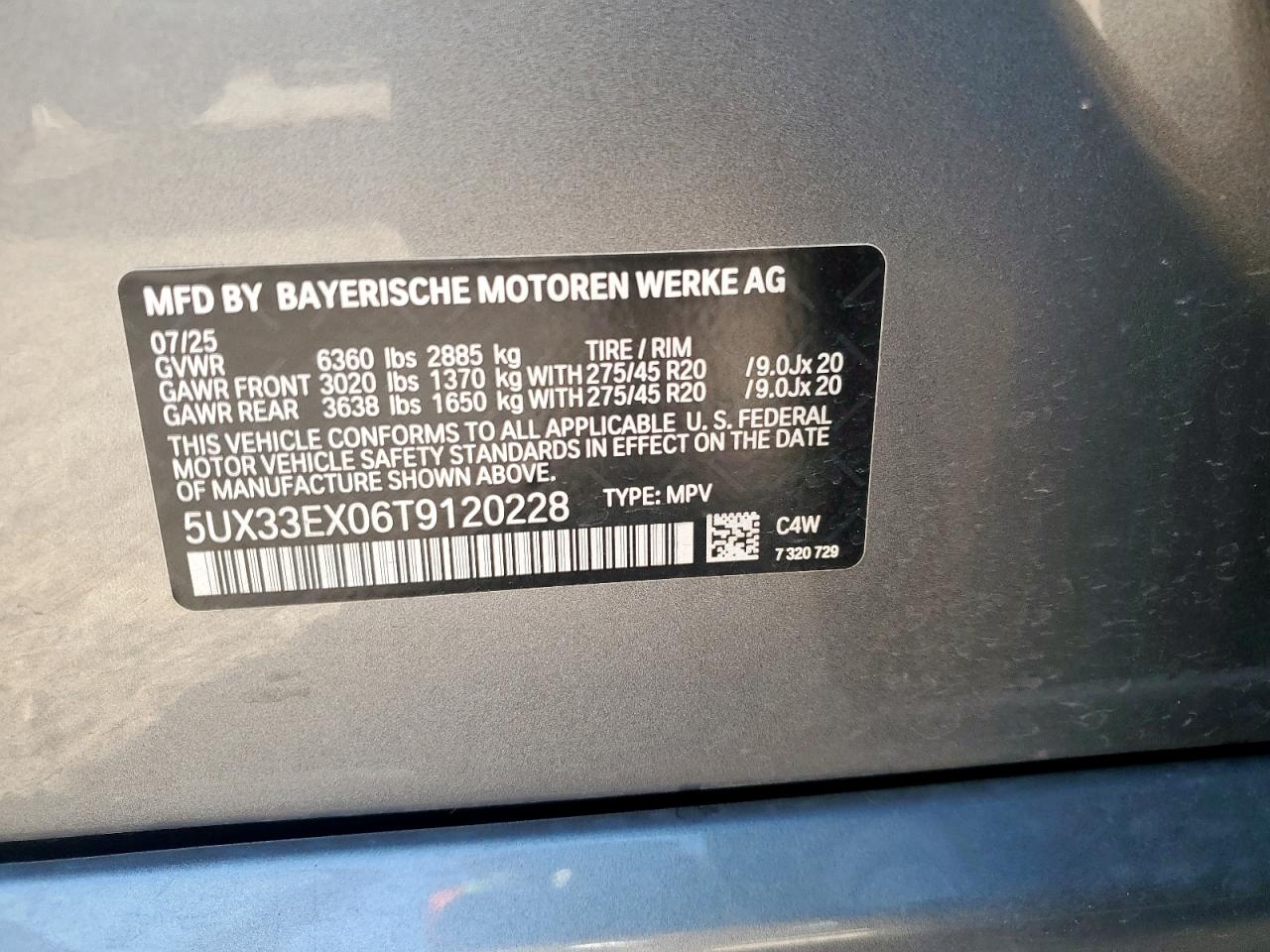 - ВИН: 5UX33EX06T9******