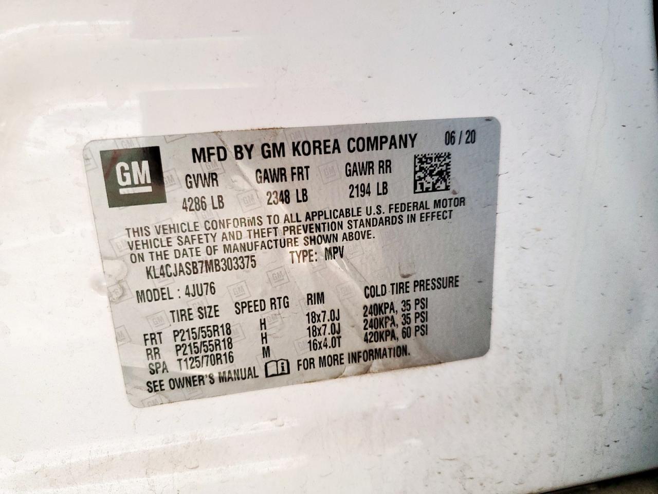 - ВИН: KL4CJASB7MB******