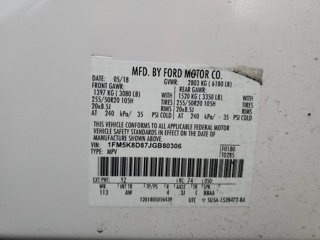 - ВИН: 1FM5K8D87JG******
