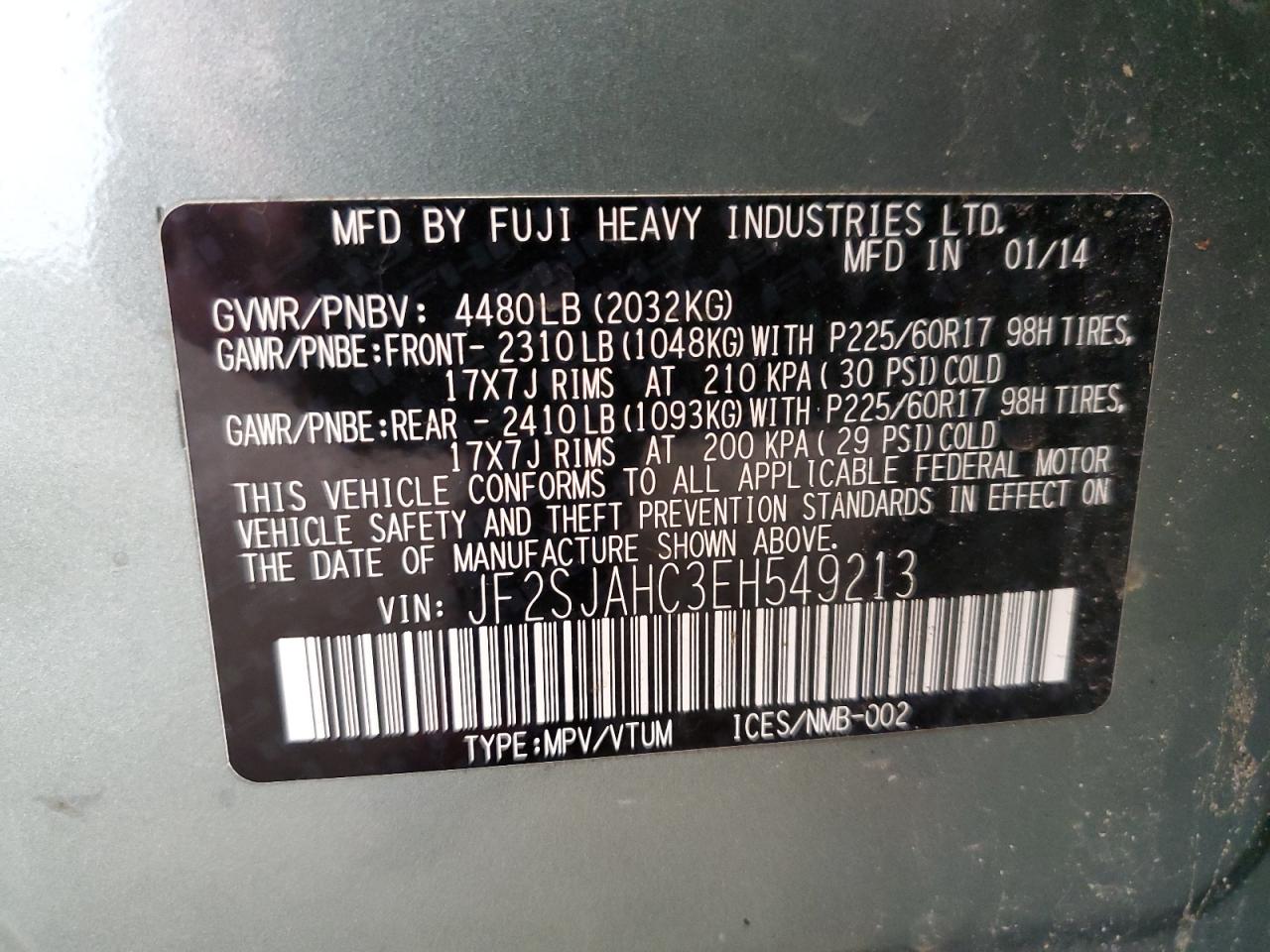 - ВИН: JF2SJAHC3EH******