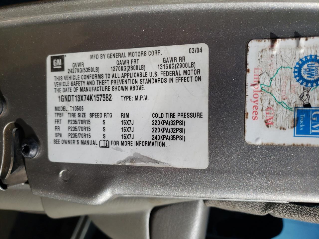 - ВИН: 1GNDT13X74K******