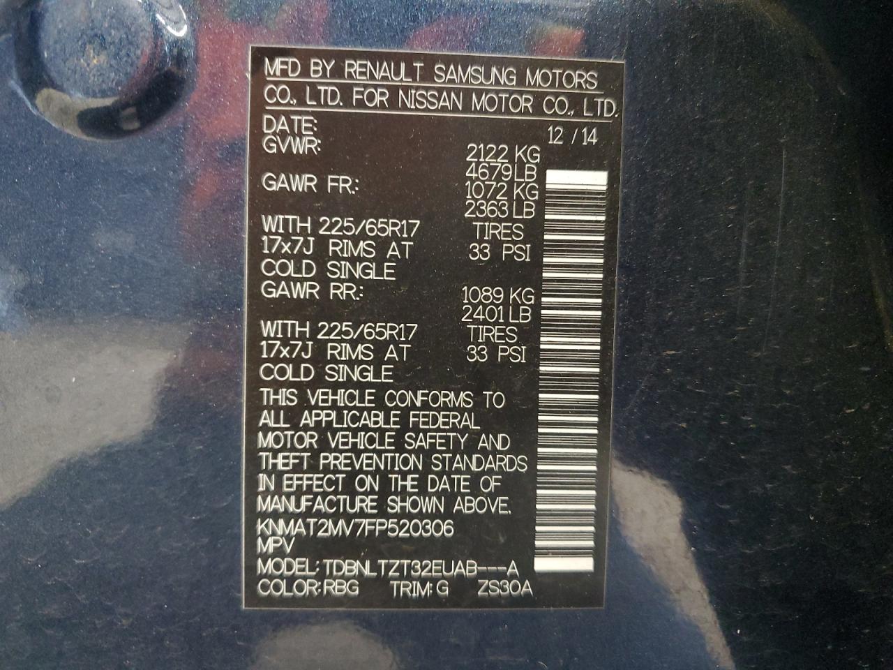 2015 NISSAN ROGUE S из США