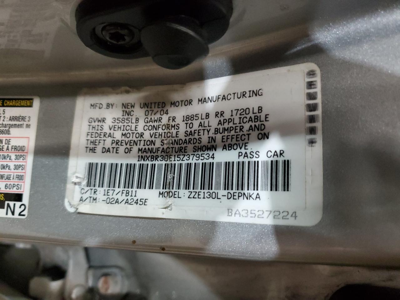 - ВИН: 1NXBR30E15Z******
