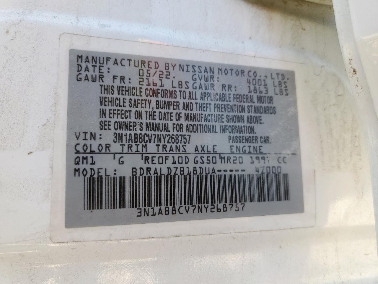 - ВИН: 3N1AB8CV7NY******