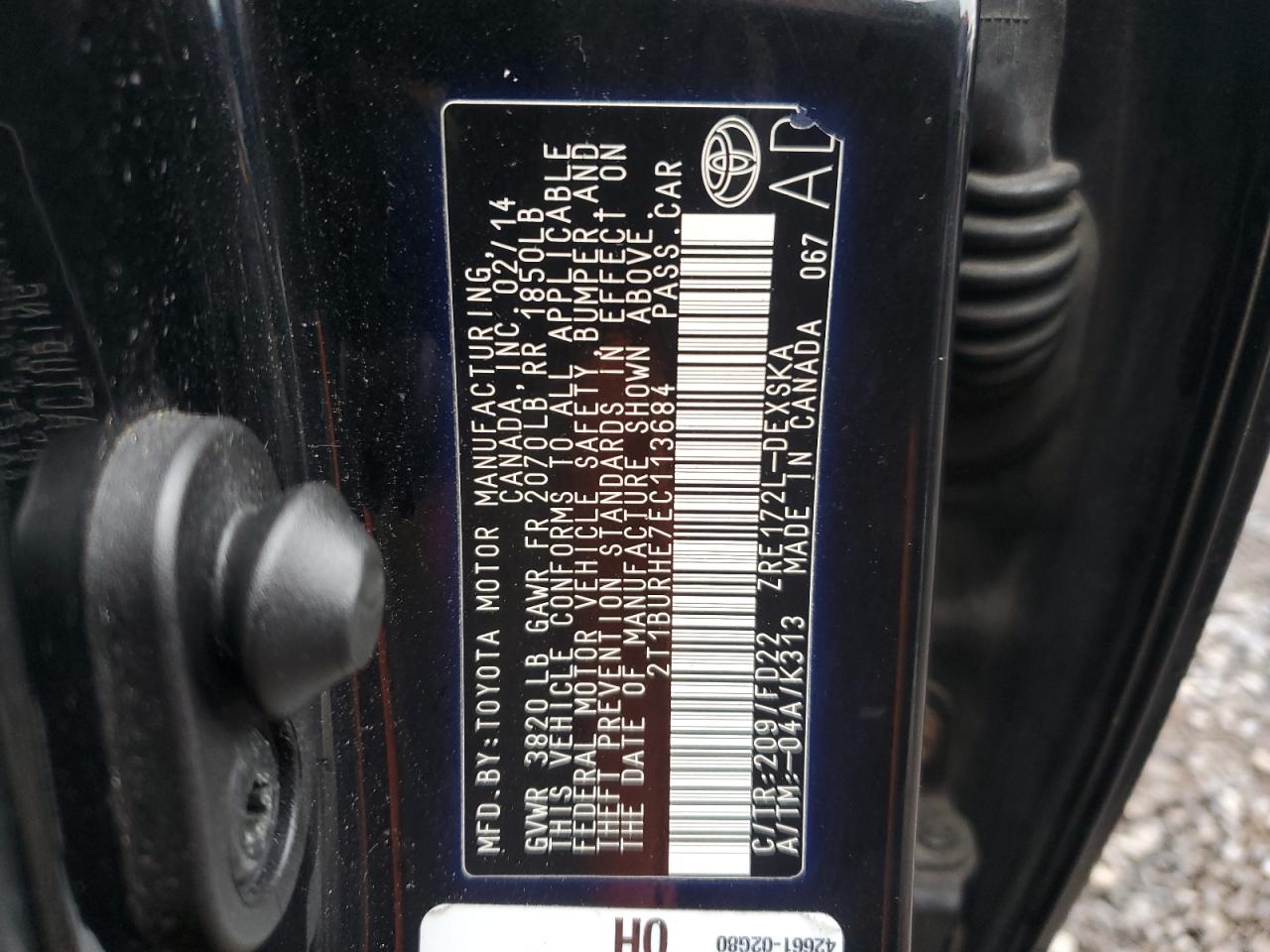 - ВИН: 2T1BURHE7EC******