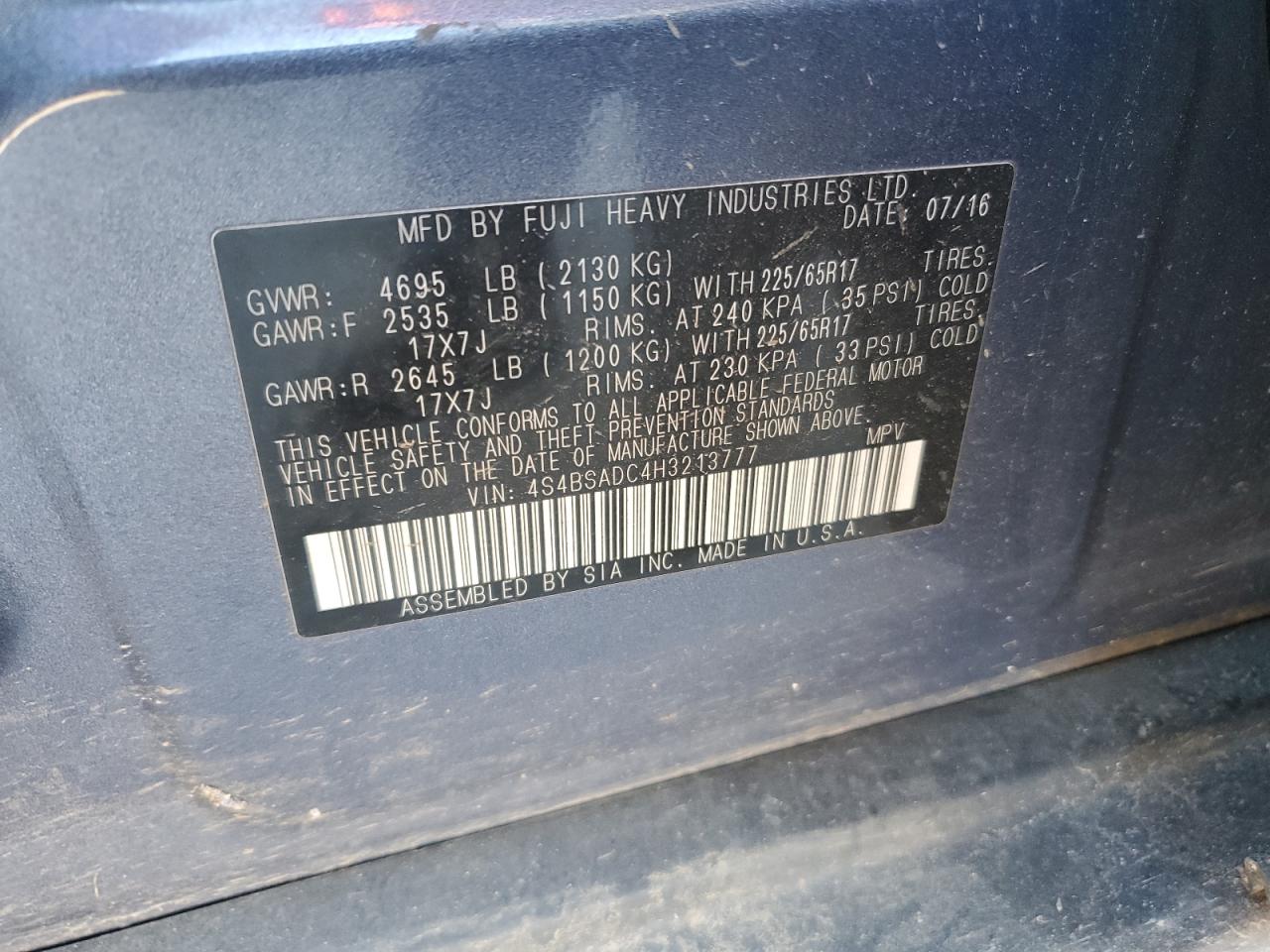 - ВИН: 4S4BSADC4H3******