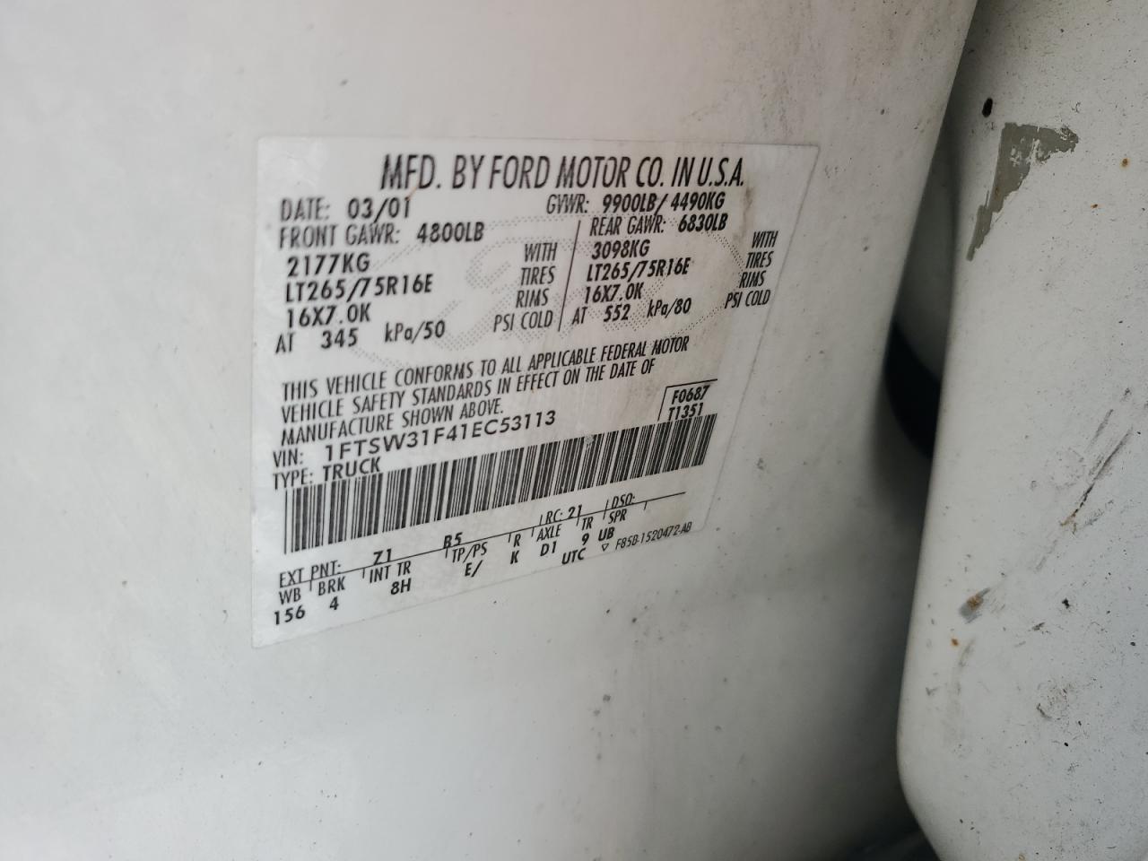 - ВИН: 1FTSW31F41E******